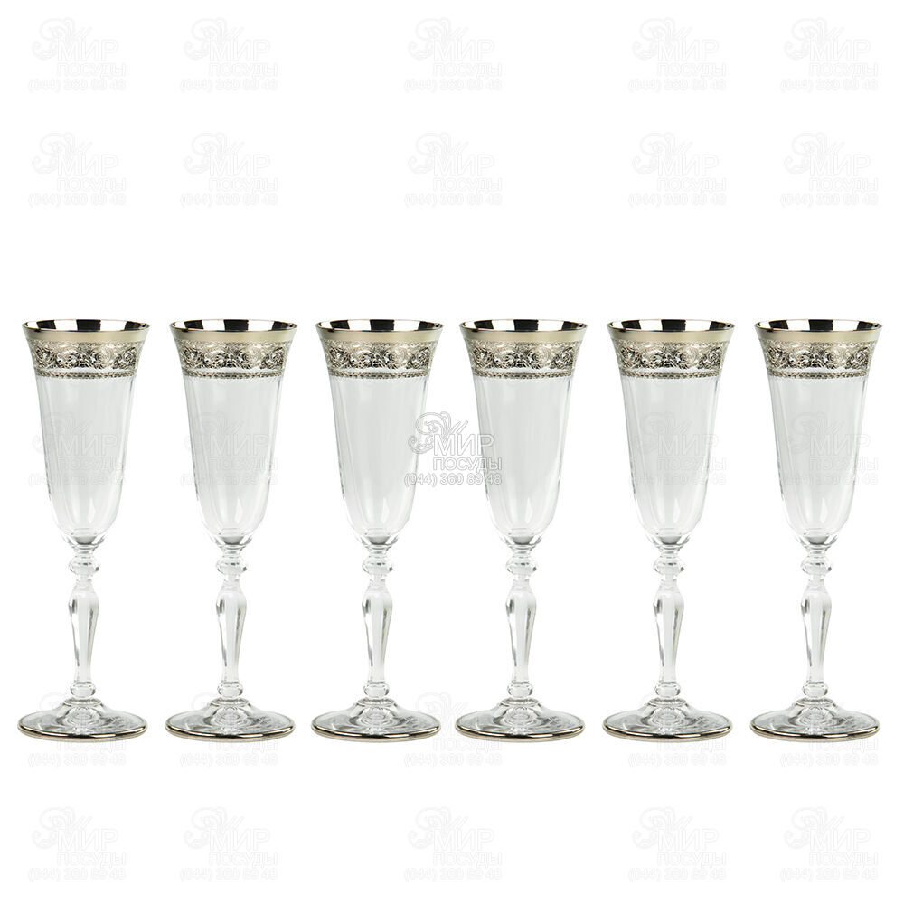 Набір келихів для шампанського від Cre Art виготовлений з кришталю. Компанія Cre Art спеціалізується на виробництві виробів із флорентійського скла та кришталю з деталями ручної роботи, покритими платиною, золотом 24 Kt та сріблом 925 проби. Особливістю виробництва виробів даного бренду є велика кількість ручних технік, які виконуються за старовинними технологіями відомих тосканських склодувів.