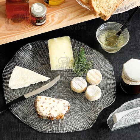 Блюдо від італійського виробника IVV виготовлене із міцного боросилікатного скла. Предмет має красиву рельєфну поверхню, завдяки якій дивовижно сяє в променях сонця, що розсіюються і заломлюються, додаючи нові нотки в святкове сервірування. Є ручною роботою, що надає виробу неповторного характеру.