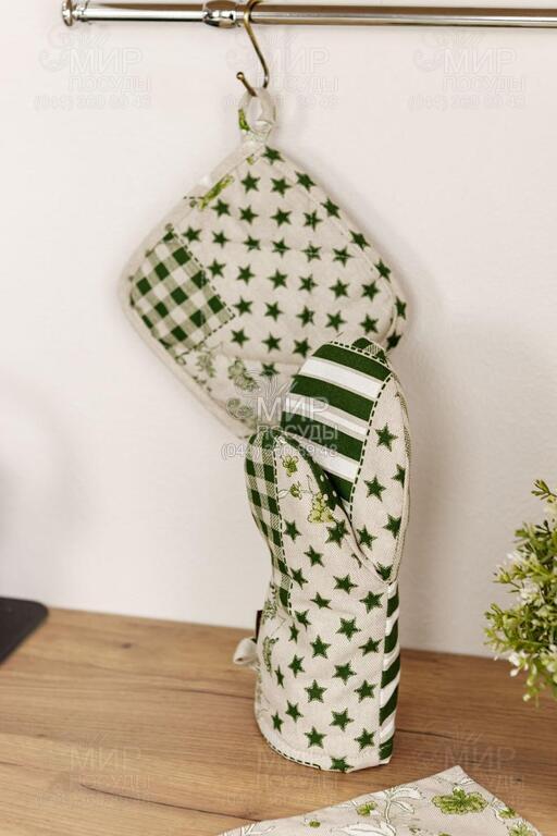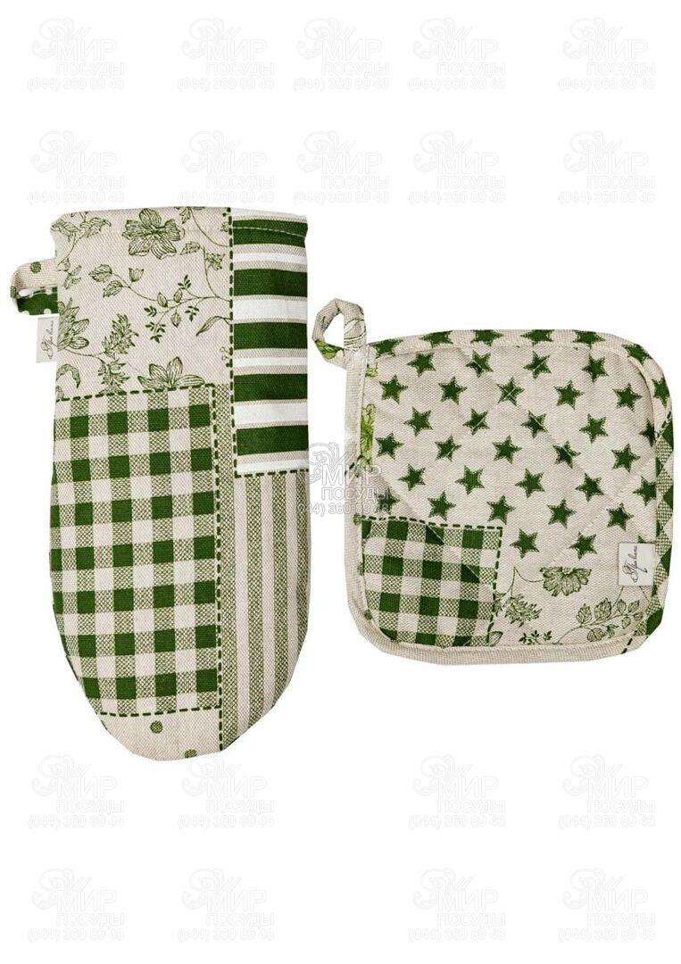 Світ посуду - Кухонні аксесуари - Рукавиці, прихватки, фартухи - Набір прихваток Господиня Пэчворк зеленый 4823093459670