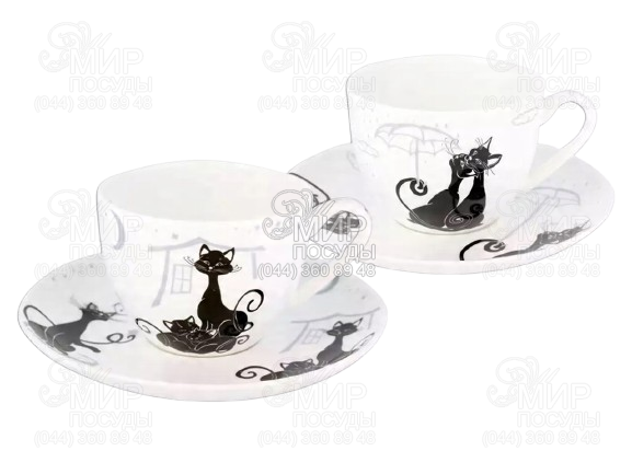 Набір чашок для чаю з блюдцями Crazy Cats 250мл 017-3103