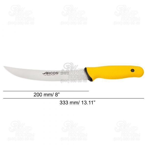 Ніж Duo від італійського виробника Arcos виготовлений із нержавіючої сталі. Оснащений ергономічною ручкою, що складається з твердого поліпропіленового ядра та м'якого каучукового покриття, завдяки чому не ковзає в руці. Революційний дизайн даного виробу припаде до душі найвибагливішого споживача і прослужить тривалий період часу не втрачаючи своєї новизни.