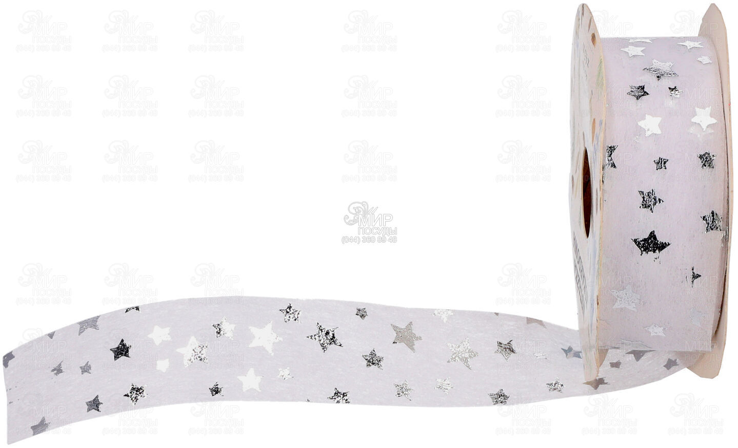 Оригінальний варіант оздоблення — декоративна стрічка, що стане привабливим акцентом у святковому інтер'єрі. Біла текстура у поєднанні із візерунком у вигляді виблискуючих зірок додають особливої тендітності прикрасі.