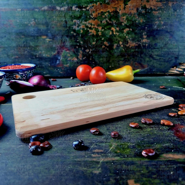 Дошка від українського бренду Maysternya виготовлена з екологічно чистого матеріалу і її можна використовувати як підставку під гаряче. Відмінно підходить для будь-яких типів ножів, у тому числі й керамічних. Рекомендуємо після миття обов'язково витерти насухо, та не мити в посудомийній машині.