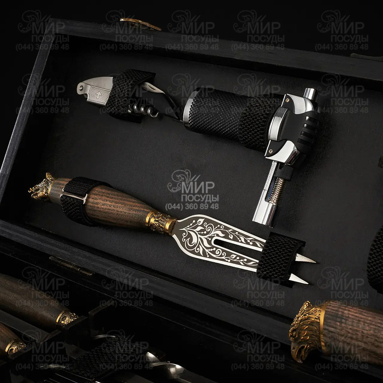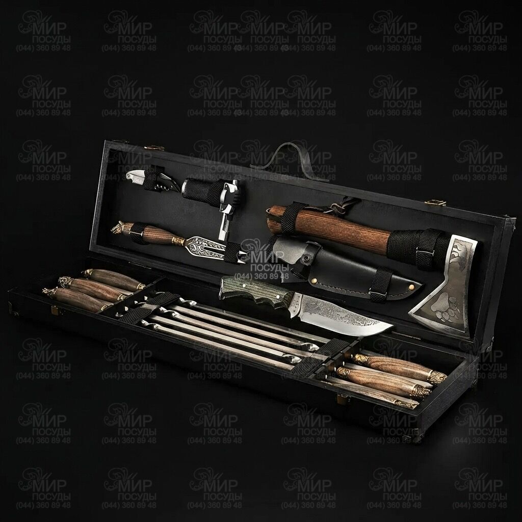 Елітний набір для справжніх поціновувачів відпочинку на природі. Усе необхідне для приготування шашлику та грилю зібрано в стильному дерев’яному кейсі. Якісні матеріали, ергономічні ручки та витончений дизайн роблять цей набір не лише практичним, а й престижним подарунком.