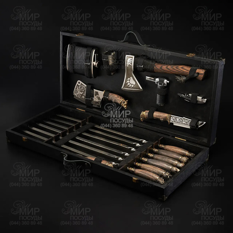 Стильний та функціональний набір для грилю та шашлику в дерев’яному кейсі стане ідеальним вибором для любителів пікніків, барбекю та відпочинку на природі. Усе необхідне для приготування м’яса, овочів чи риби зібрано в одному компактному кейсі. Завдяки зручному розташуванню інструментів Ви завжди матимете порядок та швидкий доступ до потрібного приладдя.
