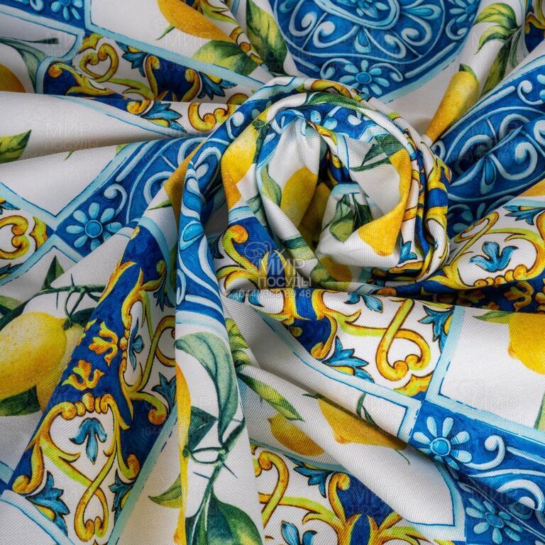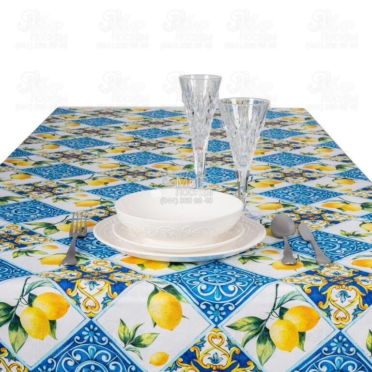 Світ посуду - Домашній інтер'єр - Домашній текстиль - Скатертини - Скатертина з тефлоновим просоченням Орнамент із лимонами 160х320см MaLiSaALTeMantel-160x320D