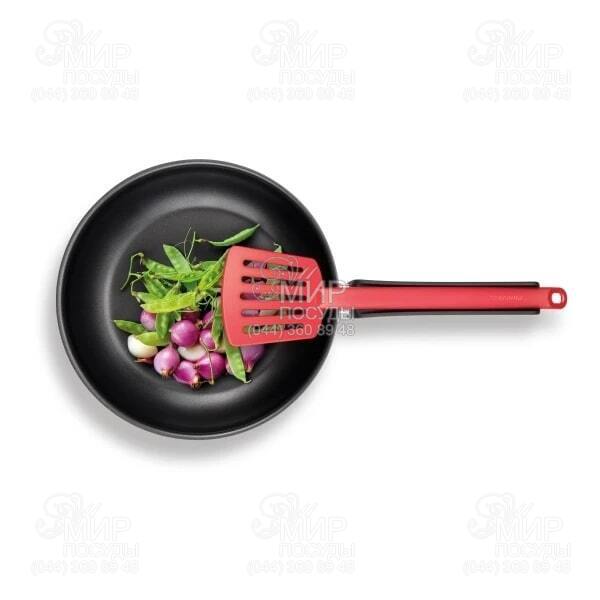 Розкішна глибока сковорода з першокласної нержавіючої сталі 18/10 із стійким антипригарним покриттям, тришаровим сендвіч-дном та зручною ручкою придатної для відкладання кухонного начиння – кухонної ложки, лопатки тощо. Підходить для використання із скляними кришками Tescoma Unicover.