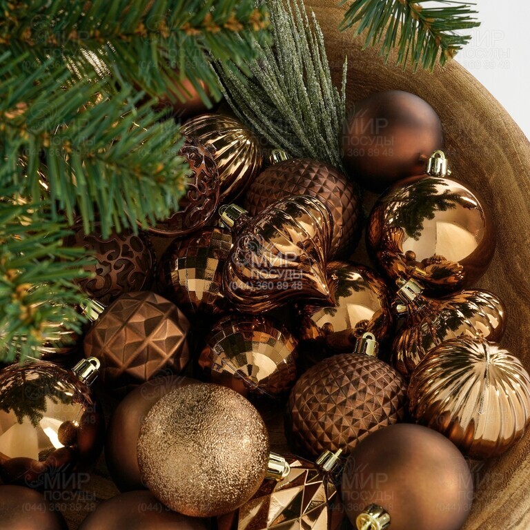 Набір елегантних пластикових прикрас від Mica Decorations стане витонченим акцентом Вашого новорічного декору. Благородне поєднання матових, глянсових та мерехтливих поверхонь у шоколадному кольорі створює атмосферу розкоші та свята. Вироби різних форм і розмірів добре виглядають як на ялинці, так і в декоративних композиціях.