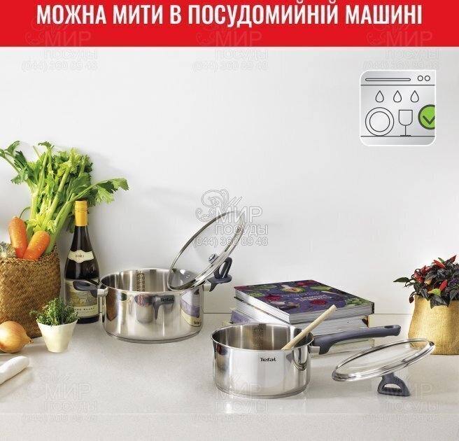 Набір посуду Daily Cook від Tefal виготовлений із нержавіючої сталі. Нержавіюча сталь ідеально підходить для подачі обідів з плити на стіл, оскільки вона виглядає так добре, як і готує. Скляні кришки дозволяють стежити за їжею під час її приготування без втрати тепла. Мірна шкала всередині дуже корисна при приготуванні соусів, супів та тушкованих страв. Вбудована технологія Thermo-Fusion забезпечує рівномірне нагрівання для більш ефективного приготування їжі.