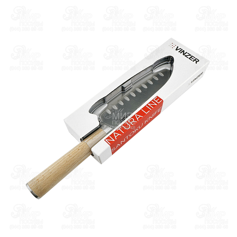 Ніж Natura Line від бренду Vinzer виготовлений з високовуглецевої сталі, стійкої до механічних пошкоджень і корозії. Дерев’яна ручка зручна у використанні, має ергономічний дизайн та не ковзає під час роботи. Лезо має клиноподібний перетин, тому ріжуча кромка довгий час зберігає гостроту і не потребує частих заточувань. Ніж дозволить тонко та акуратно нарізати різні продукти.