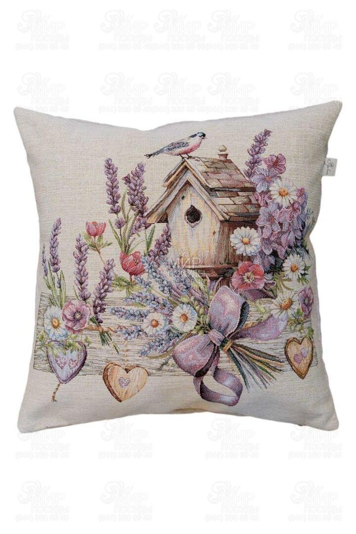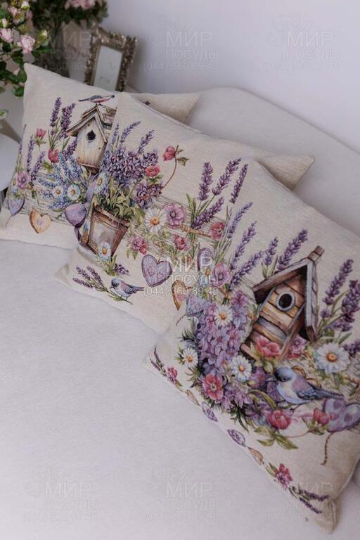 Світ посуду - Домашній інтер'єр - Подушки декоративні - Подушка декоративна Лавандовий садочок Пташка на шпаківні 45х45см 4823093477414