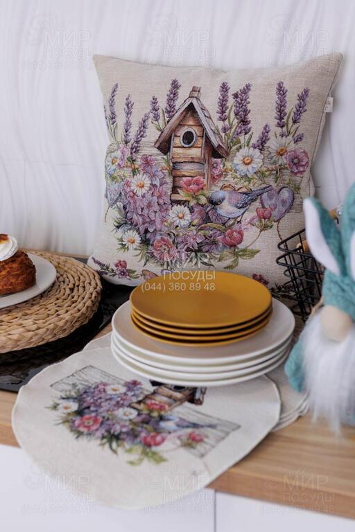 Світ посуду - Домашній інтер'єр - Подушки декоративні - Подушка декоративна Лавандовий садочок Пташка біля шпаківні 45х45см 4823093477421