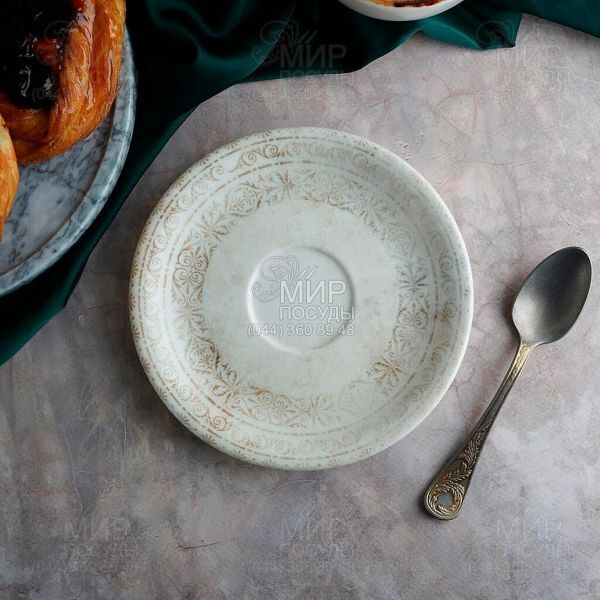 Блюдце від турецького бренду By Bone серії Antico виготовлене з порцеляни. Ємність відрізняється зручністю і практичністю, а також ідеально підходить для широкого спектру продуктів і страв. Прекрасно підійде як для домашнього використання, так і для закладів громадського харчування.