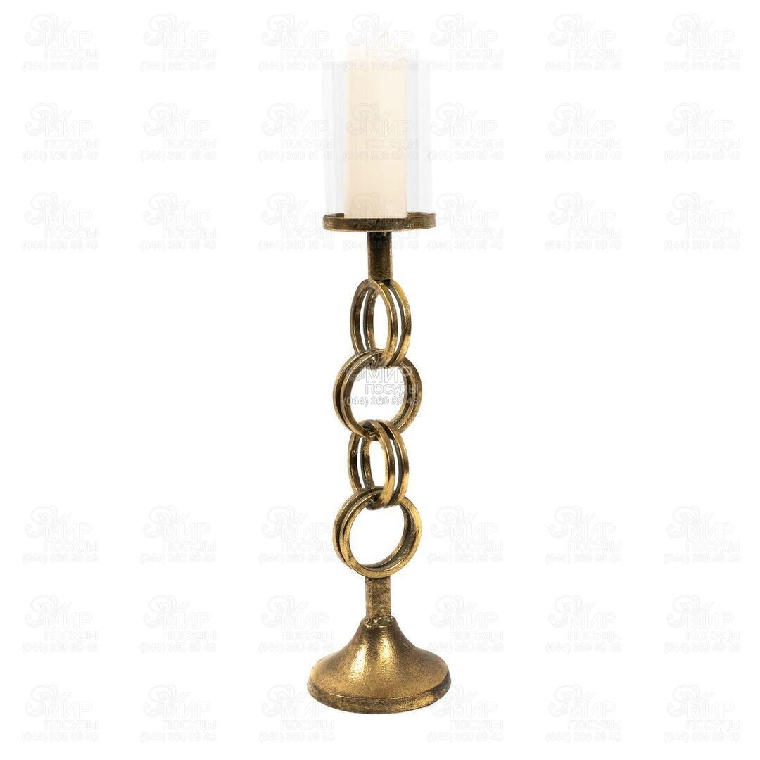 Свічник від італійського виробника Mastercraft виготовлений із полірезини - міцного матеріалу, ідеального для створення декору з дивовижно чіткою деталізацією, та надстійким фарбуванням. Вертикальний ланцюг з круглих кілець надійно утримує чашу зі свічкою. Не спаяні між собою окремі елементи, а суцільний виріб, що вилитий з композитного матеріалу та покритий металевою фарбою.