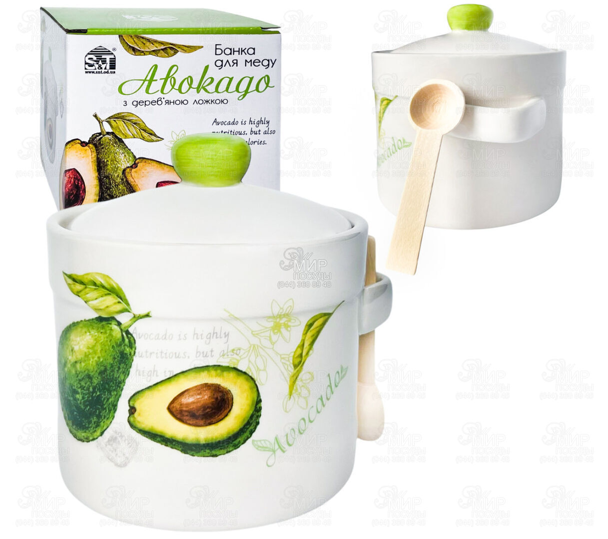 Світ посуду - Кухонний посуд - Ємності для продуктів - Дози для меду та джему - Доза для меду з кришкою та ложкою Авокадо 400мл 2370-21