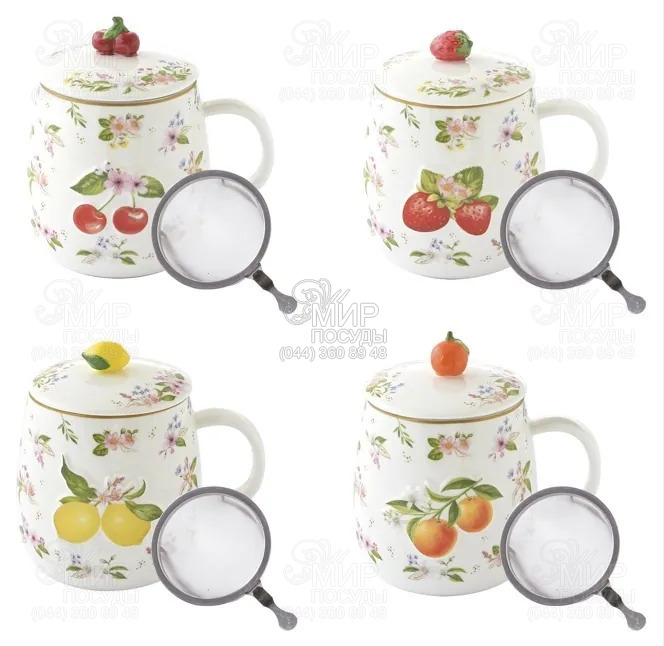 Світ посуду - Столовий посуд - Чашки - Кружки - Кружка з кришкою та ситечком Fancy Fruit Вишня 450мл R3421#FANF_2