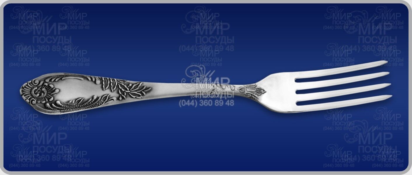 Виделка - це зручний та незамінний предмет посуду за обіднім столом. Прилад виготовлений з мельхіору та покритий сріблом 999,9° проби. Ергономічна декорована ручка добре лежить у руці. Елегантний ексклюзивний дизайн підкорить на перший погляд.