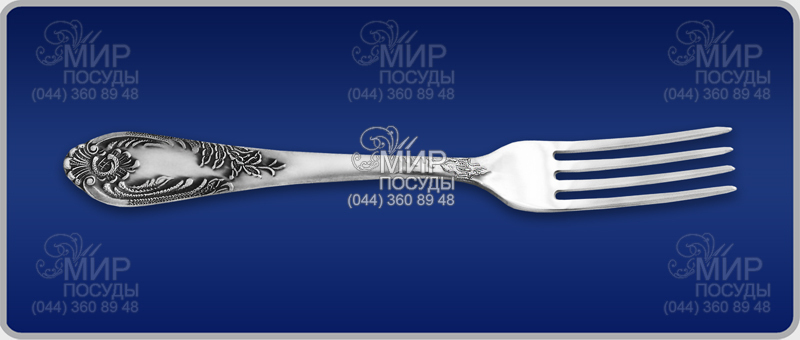 Виделка - це зручний та незамінний предмет посуду за обіднім столом. Прилад виготовлений з мельхіору та покритий сріблом 999,9° проби. Ергономічна декорована ручка добре лежить у руці. Елегантний ексклюзивний дизайн підкорить на перший погляд.