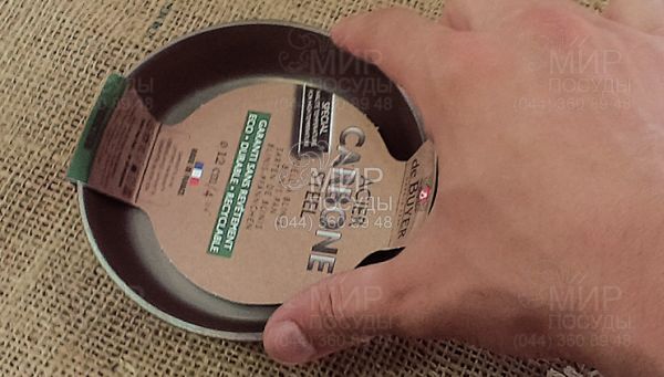 Сковорідка виготовлена з екологічно чистої вуглецевої листової сталі без покриття. Вона невелика, ліонської форми (з високими опуклими стінками без гострих кутів, розширена до верху). Така форма допомагає їжі вільно зісковзувати в тарілку, не втрачаючи вигляду. До того ж тільки на такій сковороді можна досягти рівномірної хрусткої скоринки: при 145 ° С в ній з'являється ефект карамелізації.
