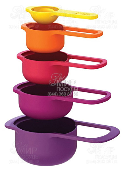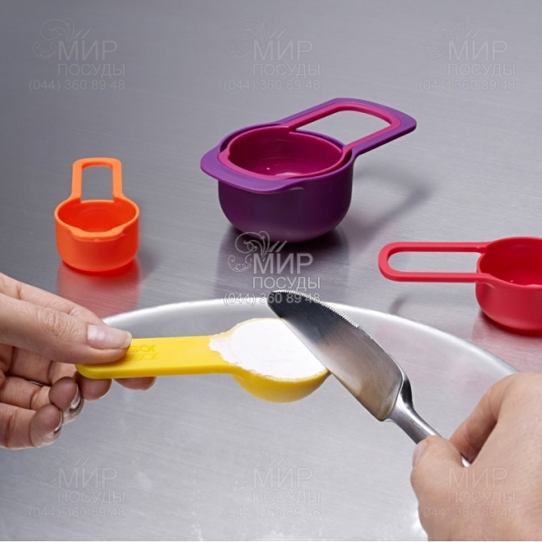 Випікаючи торт, пиріг або готуючи за рецептом якусь іншу страву, вам потрібно відміряти необхідну і точну кількість певних інгредієнтів. У такому разі на допомогу прийде набір мірних стаканчиків Nest Measure, що складається з восьми предметів. Всі мірні стаканчики виготовлені з якісного безпечного харчового пластику, а також виконані у стильному та яскравому дизайні, що веселить око господині. Розміри таких «ложечок» найрізноманітніші: від 1/2 чайної ложки (1,25 мл) до 1 чашечки (250 мл). Крім зовнішніх показників, мірні стаканчики від Joseph Joseph досить практичні та компактні. Інноваційний дизайн дозволяє зібрати всі елементи як «матрешку», тим самим спрощуючи їхнє зберігання. Вони займають мінімум місця в кухонній шафці.