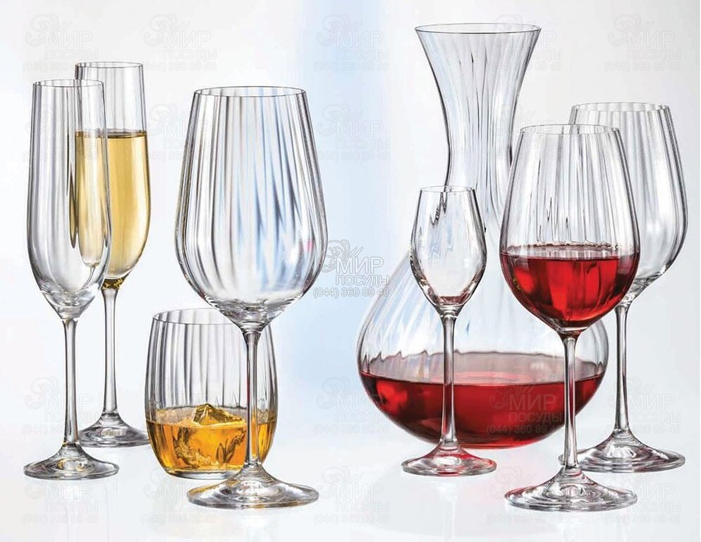 Богемське кришталеве скло - це всесвітньо відомий продукт високої якості, виготовлений у Чехії. Широкий асортимент продукції включає посуд щоденного використання, а також ексклюзивні предмети, виготовлені вручну. Компанія Crystalex виготовляє посуд та аксесуари виключно із власної кришталевої скломаси категорії Cristallin. Для підготовки основи цієї скломаси використається високоякісний кварцовий пісок і не використовується оксид свинцю. Вироби із кришталевої скломаси придатні для щоденного використання та не шкідливі для здоров'я. Технологія лазерного різання створює ідеально рівний край, стійкий до сколів. Завдяки вогневому поліруванню ця унікальна продукція відрізняється своїм яскравим блиском, легкістю та прозорістю. Серія Waterfall має класичну і в той же час унікальну форму, що нагадує прочинений тюльпан. Завдяки такій формі, що звужується до верху, аромат напоїв чудово акумулюється у келиху. Посуд даної серії відрізняється відомим дизайном, що складається з вертикальних смужок. Будь-яка рідина, налита в такий посуд, відбивається в безлічі граней, набуває якогось чарівного свічення.