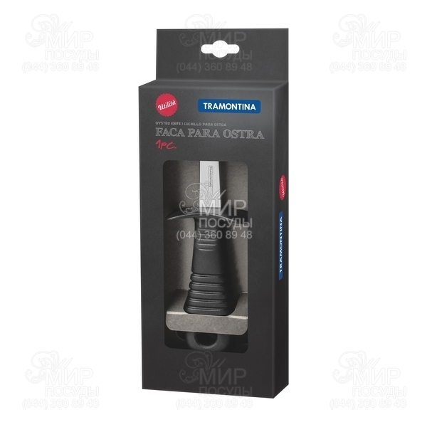 Ніж для устриць Utilita від бразильського виробника Tramontina виготовлений із нержавіючої сталі 18/10. Оснащений ергономічною ручкою з поліпропілену, завдяки чому ніж не ковзає в руці і приємний на дотик.