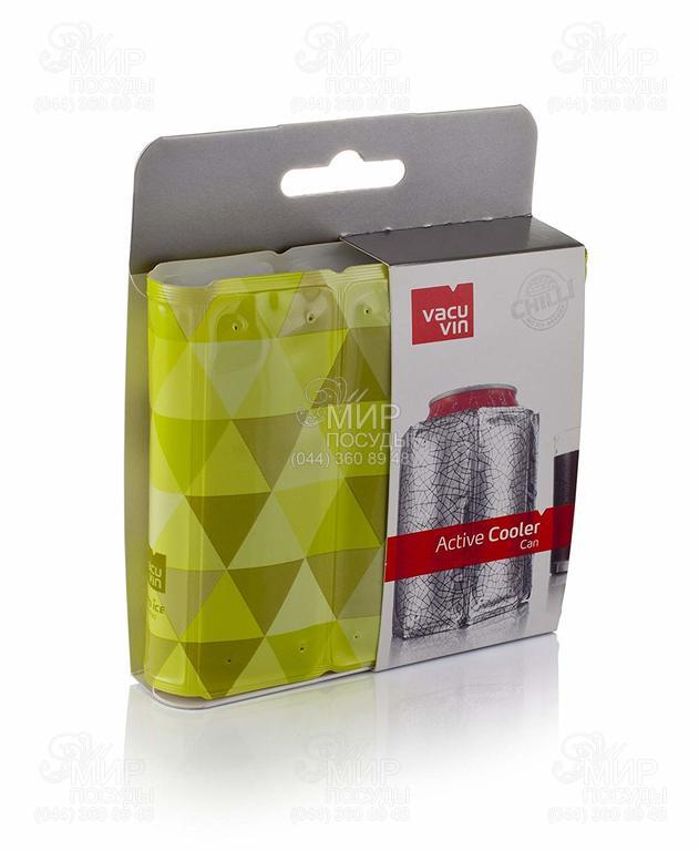 Охолоджувач для бляшанки Active cooler від нідерландського виробника Vacu Vin виготовлений із пластику. Є супер холодною гнучкою крижаною обгорткою з яскравим дизайном. Напій буде охолоджено за лічені хвилини і залишиться прохолодним протягом кількох годин.