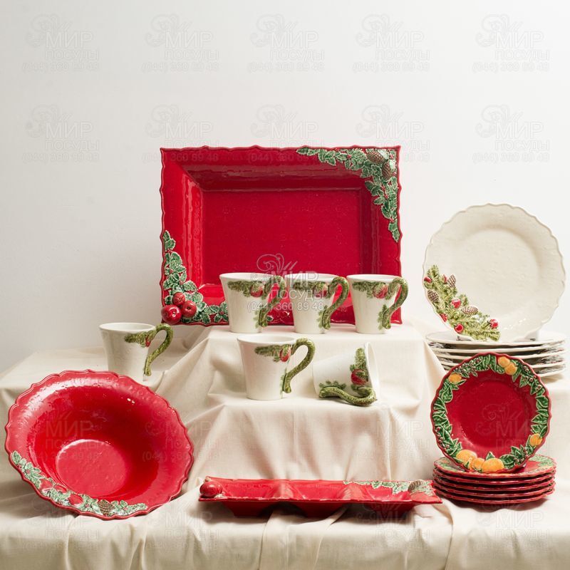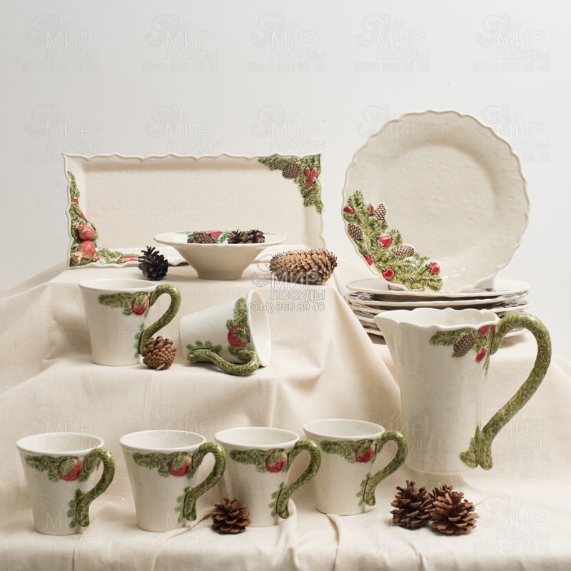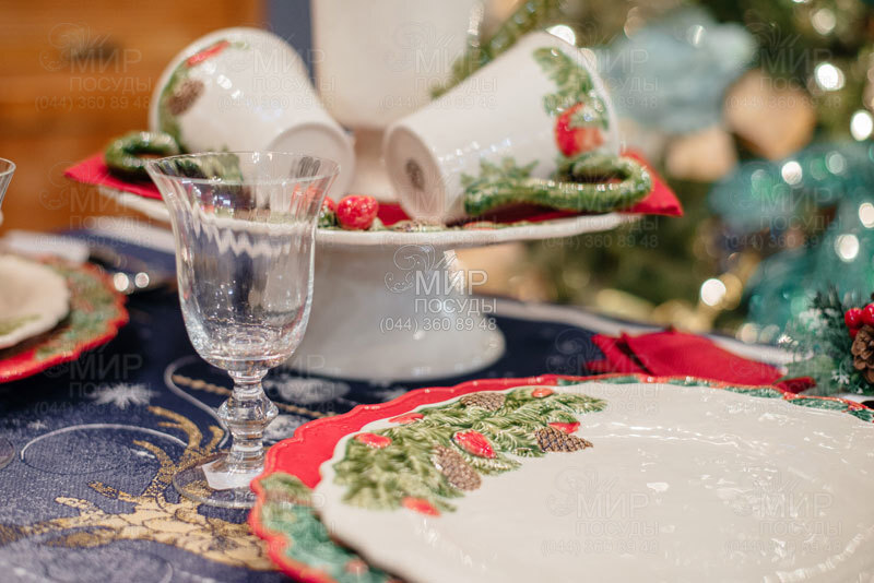 Чашка чайна від португальського бренду Bordallo виготовлена з якісної надміцної кераміки у стилі майоліка. Витримана у приємному молочному кольорі з ледь помітним тисненим орнаментом. Яскраві ручки чашок розписані під хвойні гілки, і цей малюнок із ручки гарно переходить на сам виріб. Ця модель чудово прикрасить зимовий чайний стіл.