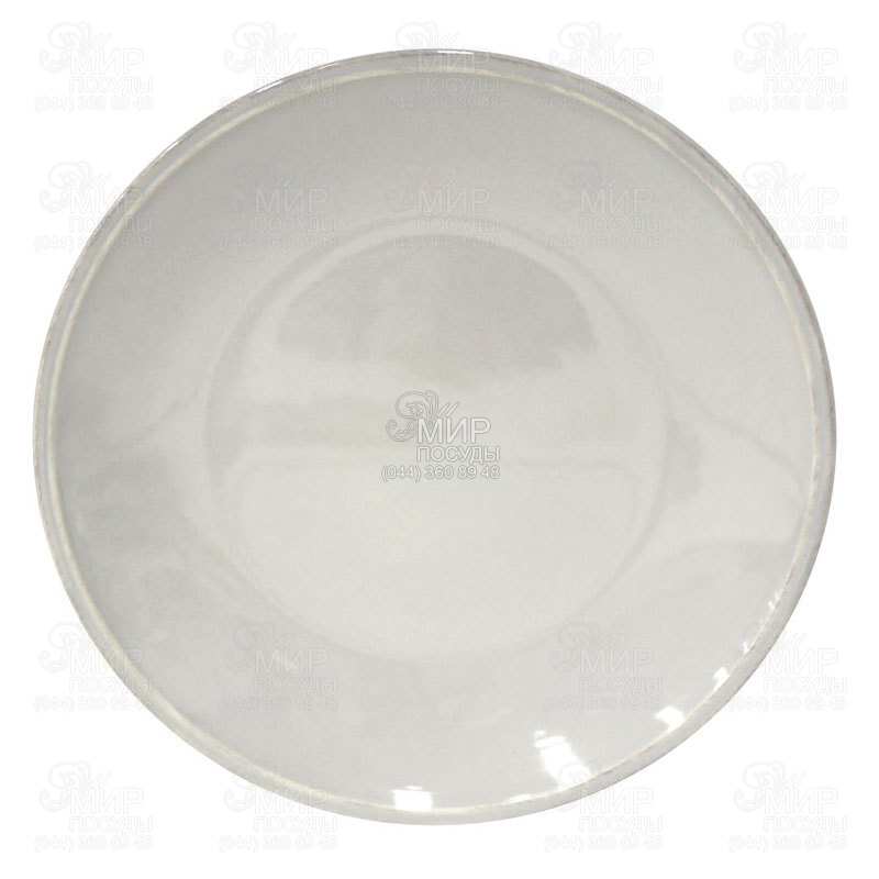 Тарілка обідня Friso від португальського виробника Costa Nova виготовлена з вогнетривкої кераміки. Ця ємність виконана в теплому сірому кольорі. По обідку вона прикрашена потертостями, що створюють ефект старовини, а збоку проставлений фірмовий логотип Costa Nova. У сонячних променях тарілка блищить глазур'ю.