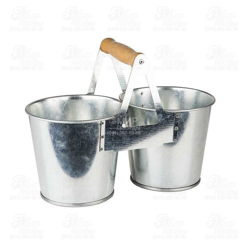 Спеціалізована ємність від німецького виробника APS виготовлена із нержавіючої сталі. Створено у вигляді подвійного цебра і може бути використане як для столових приладів, так і для подачі страв.