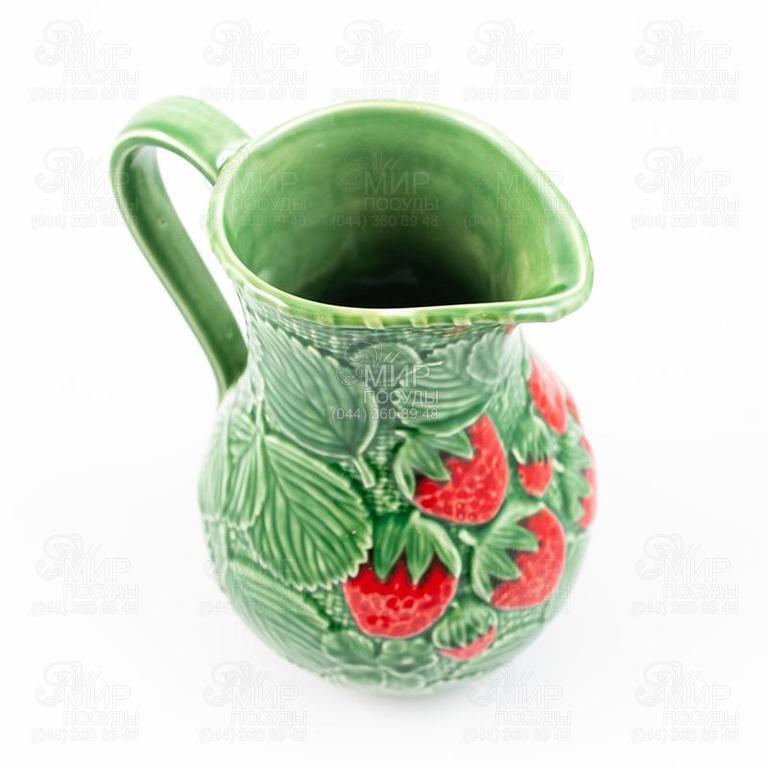 Глек Полуниця від португальського виробника Bordallo виготовлений з кераміки в стилі майоліка. Виріб відрізняє завидна міцність, на ньому не утворюються неприємні відколи та подряпини. Елітний посуд виготовляється та розписується виключно вручну, а технологія особливого випалу та покриття стійкою глазур'ю надає міцності, довговічності, а також надовго закріплює яскравість малюнка та чудовий блиск. Місткість з неймовірною точністю відтворює ефектний зовнішній вигляд листя та ягід полуниці. Займе гідне місце як на тематичних вечірках, так і на повсякденному столі.