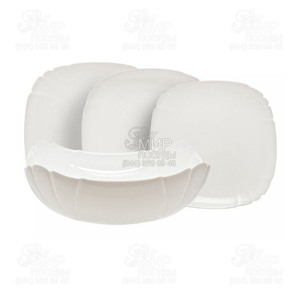 Набір тарілок Lotusia від французького виробника Luminarc виготовлений із ударостійкого скла. Комплект білого кольору стане справжньою окрасою обіднього столу.