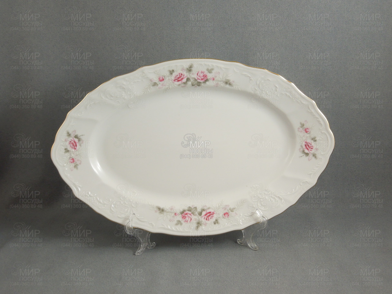 Світ посуду - Столовий посуд - Блюда - Блюда овальні - Блюдо овальне Bernadotte Бліді троянди із золотою облямівкою 34см