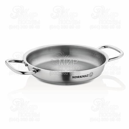 Сковорода Proline від турецького виробника Korkmaz виготовлена з нержавіючої сталі Cr-Ni 18/10. Володіє інкапсульованим товстим дном, що сприяє швидкому та рівномірному нагріванню посуду. Ергономічні міцні ручки не нагріваються під час приготування їжі, оскільки закріплені точковим зварюванням.