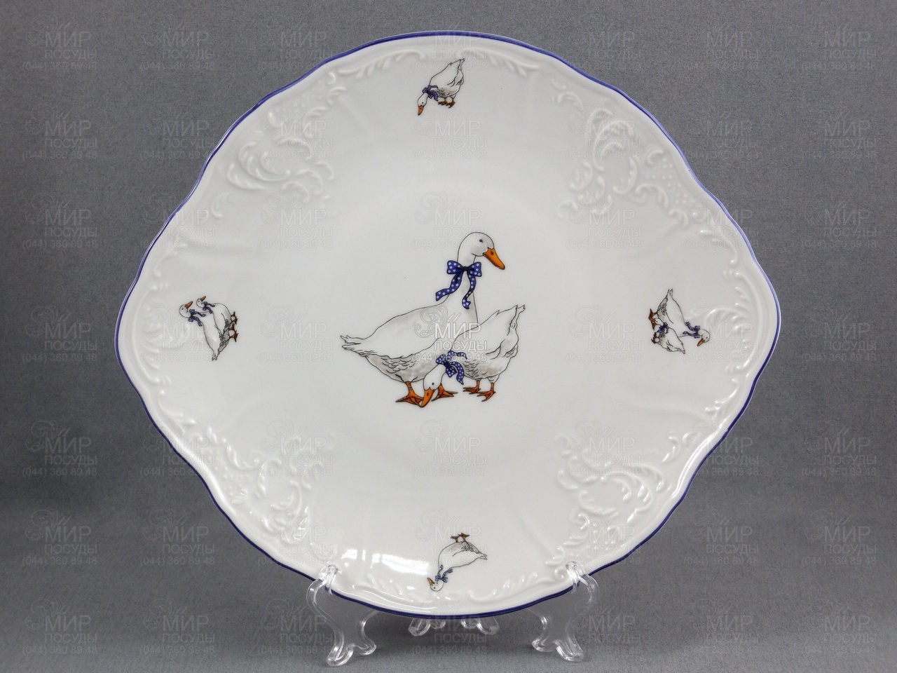 Блюдо овальне Bernadotte Гуси блакитний кант блакитний кант...