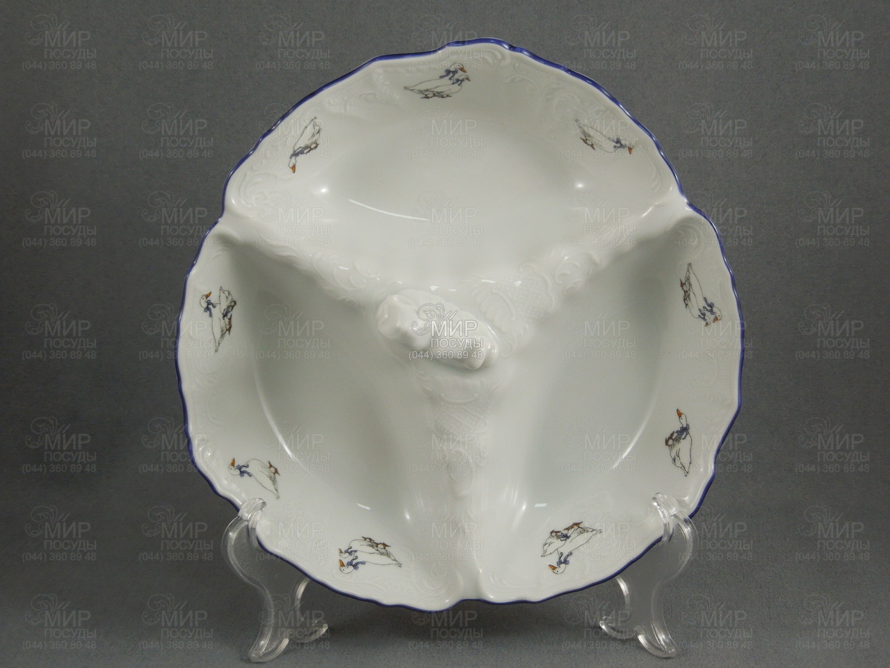 Світ посуду - Столовий посуд - Кабаретниці - Кабаретниця мала Bernadotte Гуси блакитний кант блакитний кант 23см