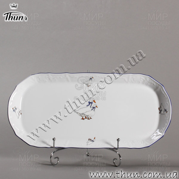 Піднос прямокутний Bernadotte Гуси блакитний кант 40см