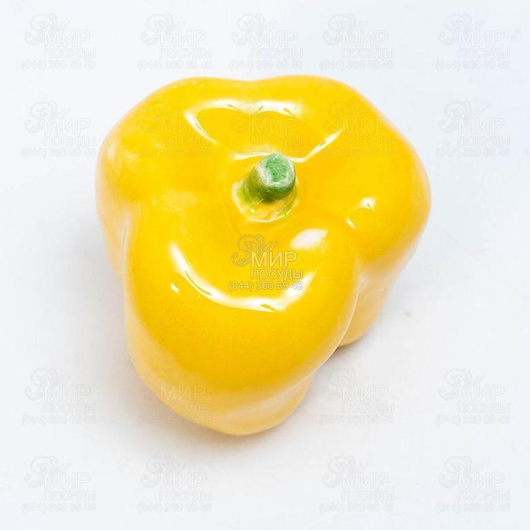 Чудовий декор для кухні у вигляді жовтого перцю виготовлений з товстої кераміки та покритий глянсовою глазур'ю. Як догляд за виробом не рекомендується застосовувати автоматичне миття та чищення жорсткими абразивними порошками.
