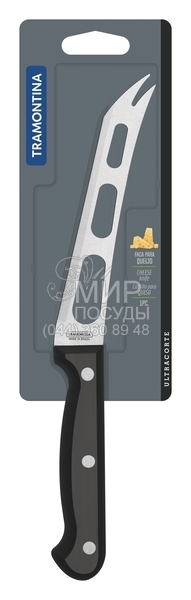 Ніж для сиру Ultracorte від бразильського виробника Tramontina виготовлений із нержавіючої сталі. Рукоятка зроблена з поліпропілену із захисним шаром проти розвитку мікробів. Завдяки особливому підбору матеріалів та технології виготовлення відноситься до професійних високоякісних моделей.