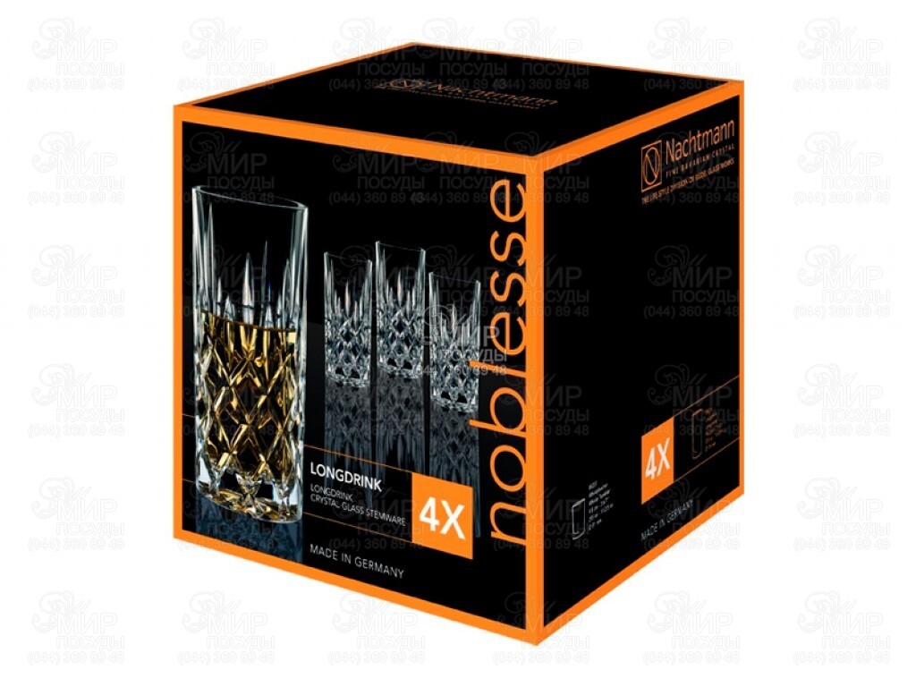 Набір склянок для напоїв Noblesse від німецького виробника NACHTMANN виготовлений із кришталевого скла. Шикарний комплект розрахований на чотири персони і принесе естетичного задоволення під час різноманітних святкувань. Задекорований вишуканим гранованим малюнком, що переливається яскравим блиском з усіх боків.