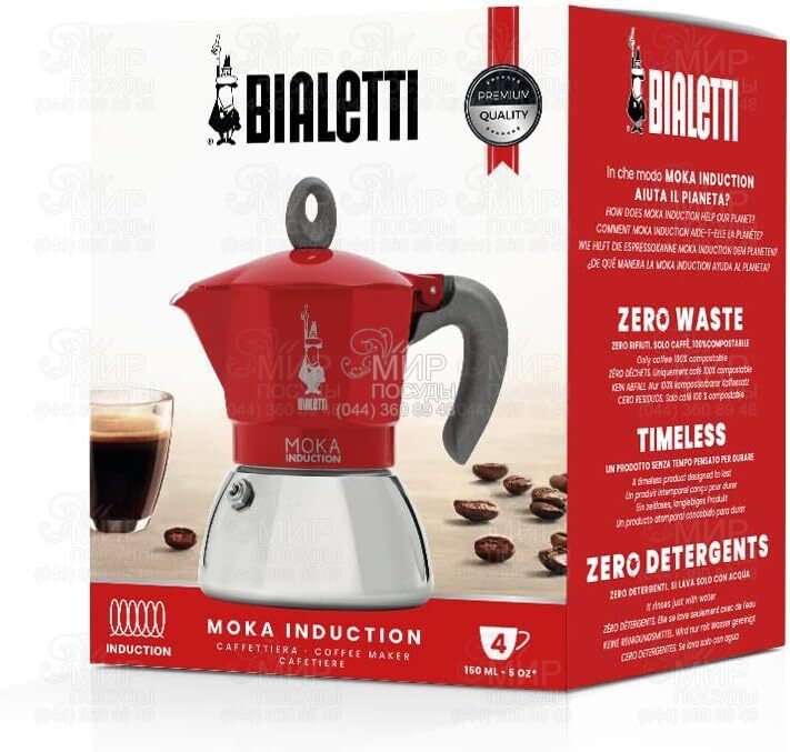 Світ посуду - Кухонний посуд - Кавоварки та турки - Гейзерні кавоварки - Гейзерна кавоварка на 4 чашки Moka Induction Red 150мл 6944