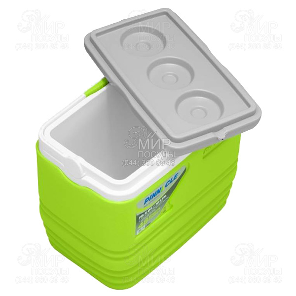 Ізотермічний контейнер від індійського виробника Pinnacle виготовлений і міцного пластику. Внутрішній шар складається з екологічно безпечного пластику, а термоізоляцією є спеціальний пінопласт. Наявність фіксатора закритого положення у кришці попереджає випадання вмісту контейнера. Є клапан швидкого доступу. Підтримує температуру за допомогою акумуляторів Ice Akku, Soft Ice. Міцна ручка дозволить без труднощів переносити контейнер.