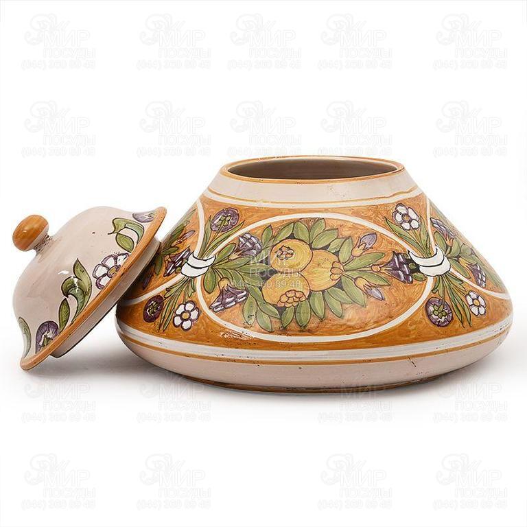 Оригінальна ємність для зберігання з кришкою вишукано декорує інтер'єр вітальні, витриманої у стилі кантрі чи прованс. Глибокий виріб прикрашений соковитим натюрмортом. Складіть колекцію шедеврів керамічного мистецтва, виготовлених італійськими майстрами, із соусника, горщика, вази для підлоги і декоративної тарілки. Кожен предмет розписаний вручну з використанням старовинних традицій та збереженням загального дизайну.