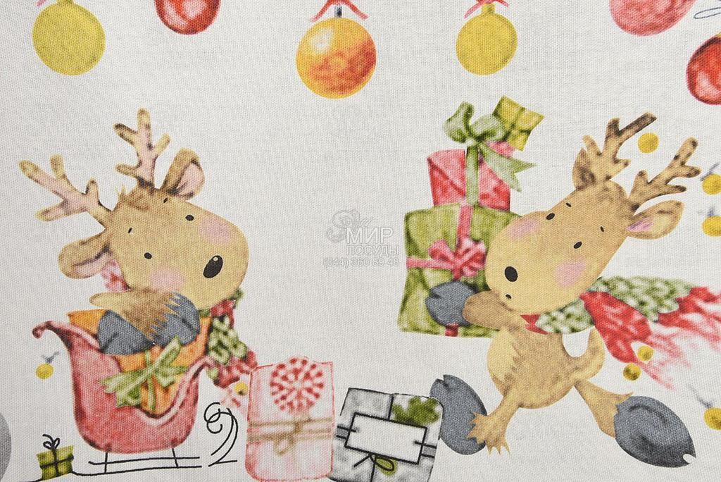 Скатертина, яка стане не лише вдалим тлом для новорічного сервірування, а й гармонійним штрихом радісної святкової атмосфери. Світлий бавовняний текстиль - безпрограшний варіант для оформлення особливої вечері, а яскравий яскравий малюнок створить позитивний настрій усім присутнім. До такої скатертини підійде будь-який посуд, у будь-якому випадку стіл виглядатиме ефектно. А для більшої виразності радимо додати контрастні комплекти серветок із цієї колекції. Можна прати в ручному та автоматичному делікатному режимі (без сушіння в центрифузі) при температурі не вище 30°. Використовувати засоби кольорових тканин. Прасувати при середньому нагріванні праски. Заборонені відбілювання та хімчистка.