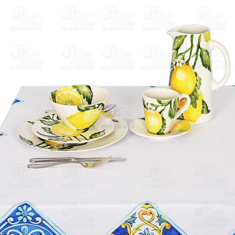 Світ посуду - Домашній інтер'єр - Домашній текстиль - Скатертини - Скатертина з тефлоновим просоченням Орнамент із лимонами 160х240см MaLiSaTeMantel-160x240DAC