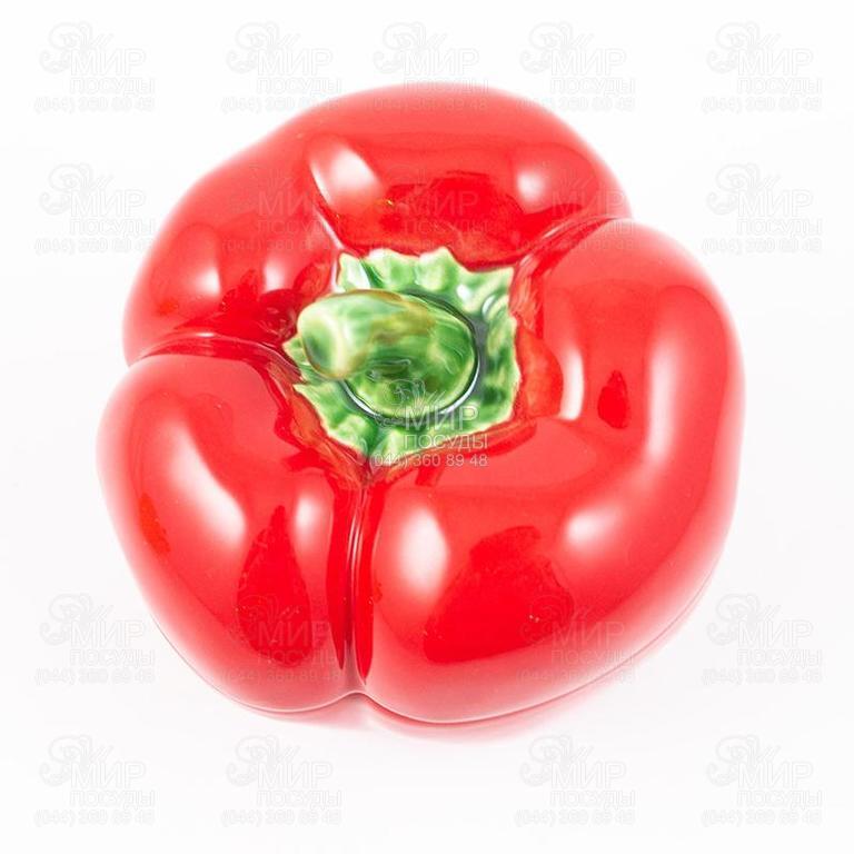Перець червоний від португальського виробника Bordallo виготовлена з кераміки. Така містка баночка зроблена у формі апетитного болгарського перцю і виглядає дуже реалістично. Її червоні боки, прикрашені вручну, м'яко сяють у променях сонця, а хвостик перчика служить ручкою кришки. Чудова ємність, виконана в техніці майоліка, чудово урізноманітнить кухонний інтер'єр.