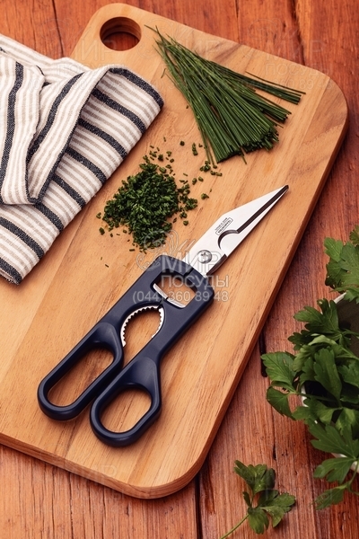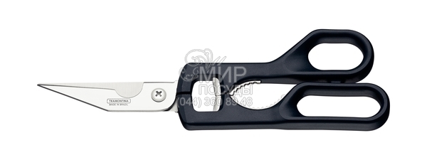 Кухонні ножиці Supercort від бразильського виробника Tramontina виготовлені з нержавіючої сталі 18/10. Завдяки фірмовому заточуванню, вони легко справляються з різкою навіть дуже щільних предметів. Пластикові чорні ручки зручні у використанні та не ковзають. Багатофункціональність інструменту забезпечують додаткові зубчики для розколювання горіхів. Ця модель стане незамінним помічником на Вашій кухні.