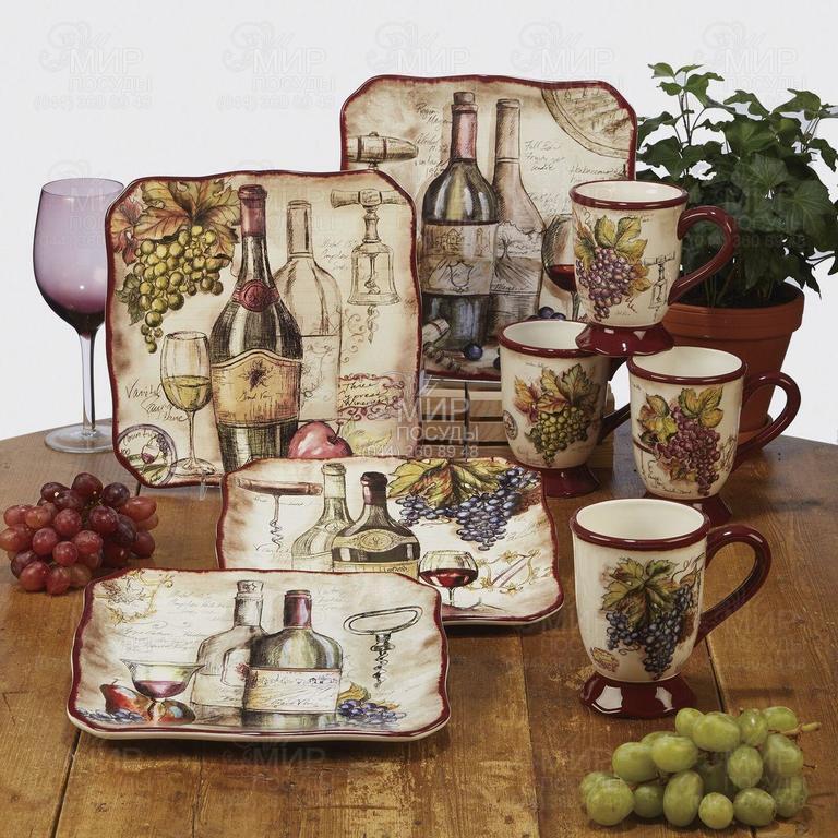 Гуртки з оригінальним дизайном у стилі кантрі від популярної творчої студії Tres Sorelle Studios додадуть нотки вишуканості звичному сімейному чаюванню. Вироби прикрашені яскравими гронами винограду, розміщеними на білому тлі з візерунком у вигляді записів із виноробного журналу та фрагментами пейзажів із виноградниками. Основи, ручки та кромка кухлів мають гарний винний відтінок, який виглядає приголомшливо завдяки глянцевій глазурі, нанесеній зверху.
