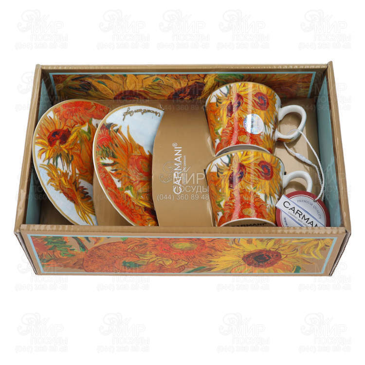 Світ посуду - Столовий посуд - Чашки - Набіри кавових чашок - Набір чашок для еспресо з блюдцями Вінсент ван Гог Соняшники 100мл 830-0706