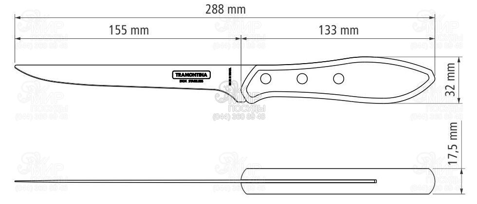 Ніж для м'яса Tramontina чудово збалансований і має чудові ріжучі властивості. Це досягається завдяки використанню високоякісної нержавіючої сталі AISI 420. Ручки приладу виготовляються з інноваційного матеріалу Polywood, унікальний матеріал, що складається з великої кількості шарів сосни, які просочуються смолою, потім спресовуються разом і поліруються. Матеріал настільки якісний і зносостійкий, що його можна мити в посудомийній машині. Ідеальні прилади для барбекю у саду з Вашими близькими друзями та родиною.